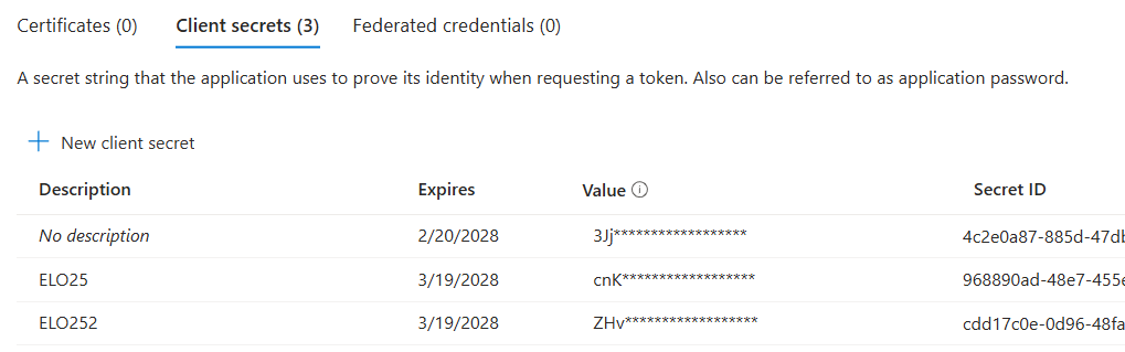 Ein neues Client Secret hinterlegen und dieses notieren, da es ansonsten neu angelegt werden muss, weil es nicht mehr ausgelesen werden kann.