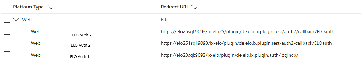 Unter Authentication (Preview) ist eine Callback URL vom Typ Web zu hinterlegen. Der Screenshot zeigt hier 3 URIs für drei unterschiedliche ELO Server. Der Callback URL ist ebenfalls bei der Anlage des Providers in der AdminConsole ersichtlich.