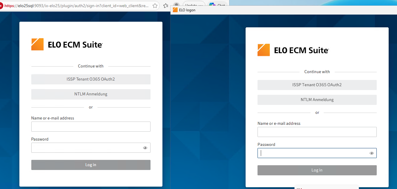 - Der Callback URL wird hier seitens ELO immer dynamisch bestimmt. Verbindet man sich also mit einem HTTP Endpunkt auf Port 9090 und in der App ist hier ein HTTPS Endpunkt mit Port 9093 festgelegt, dann übermittelt der JavaClient bspw. den 9090er Port und HTTP als Protokoll. Dann kommt bei der Azure-Anmeldung eine Fehlermeldung, dass der Redirect-URI nicht konfiguriert ist.